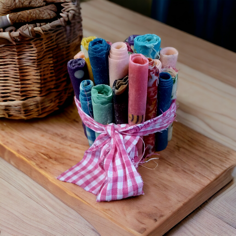 Ein Zero-waste-Produkt, da wir unsere Reste aus der Bienenwachstuchherstellung verwenden.