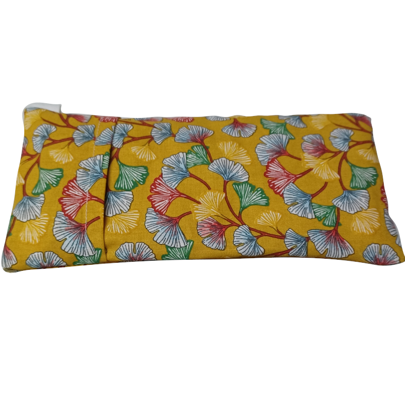 Augenkissen mit Bio Dinkelkörner und Lavendelblüten Füllung, Ginkgo gelbbraun Design, ca. 10 x 20cm