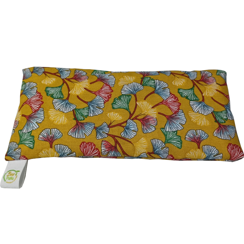 Augenkissen mit Bio Dinkelkörner Füllung, Ginkgo gelbbraun Design, ca. 10 x 20cm