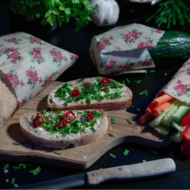 Bienenwachstücher, 3er Set, im Rosen Design, je 1x S 16x16cm, M 25x25cm, L 35x35cm